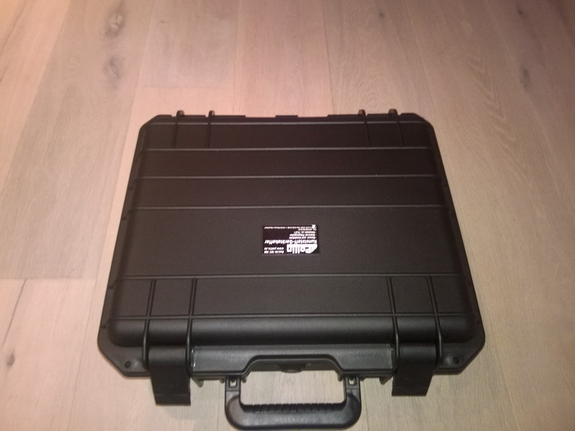 Hängen geblieben bin ich schließlich bei einem Kuststoffkoffer mit den Maßen 430x380x165mm, den der Versandhändler Pollin für knapp 45,-€ anbietet.