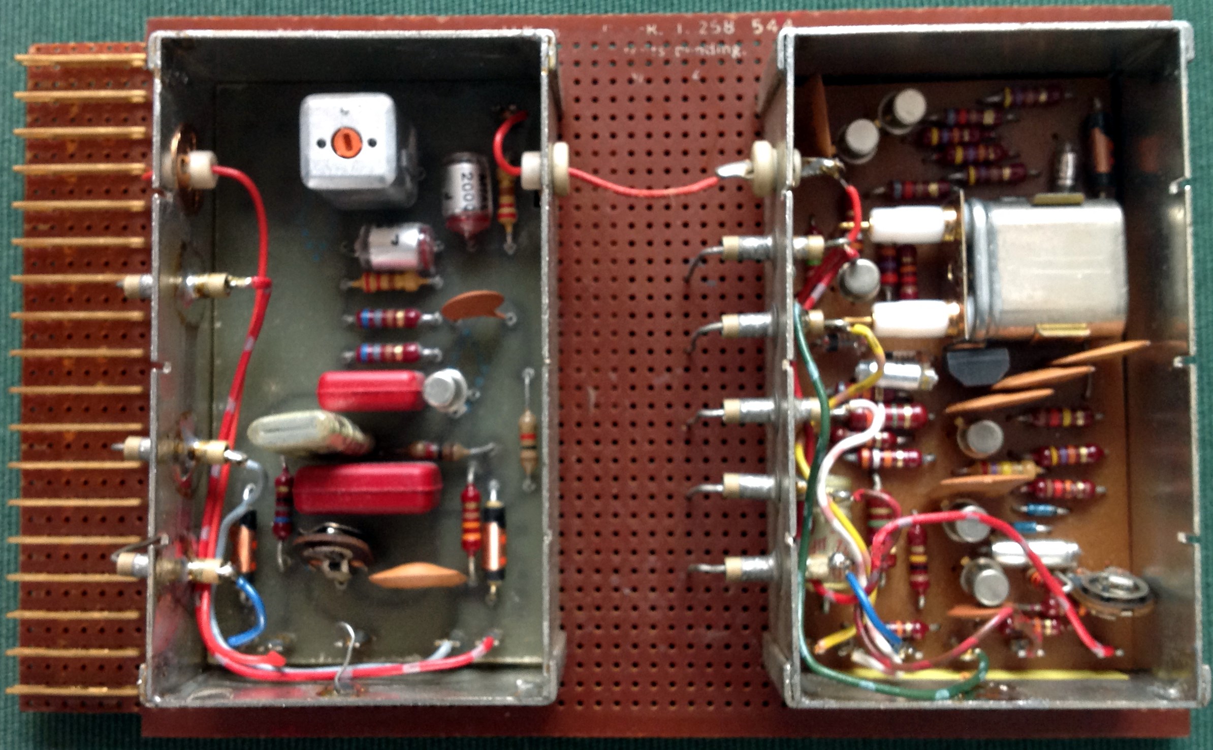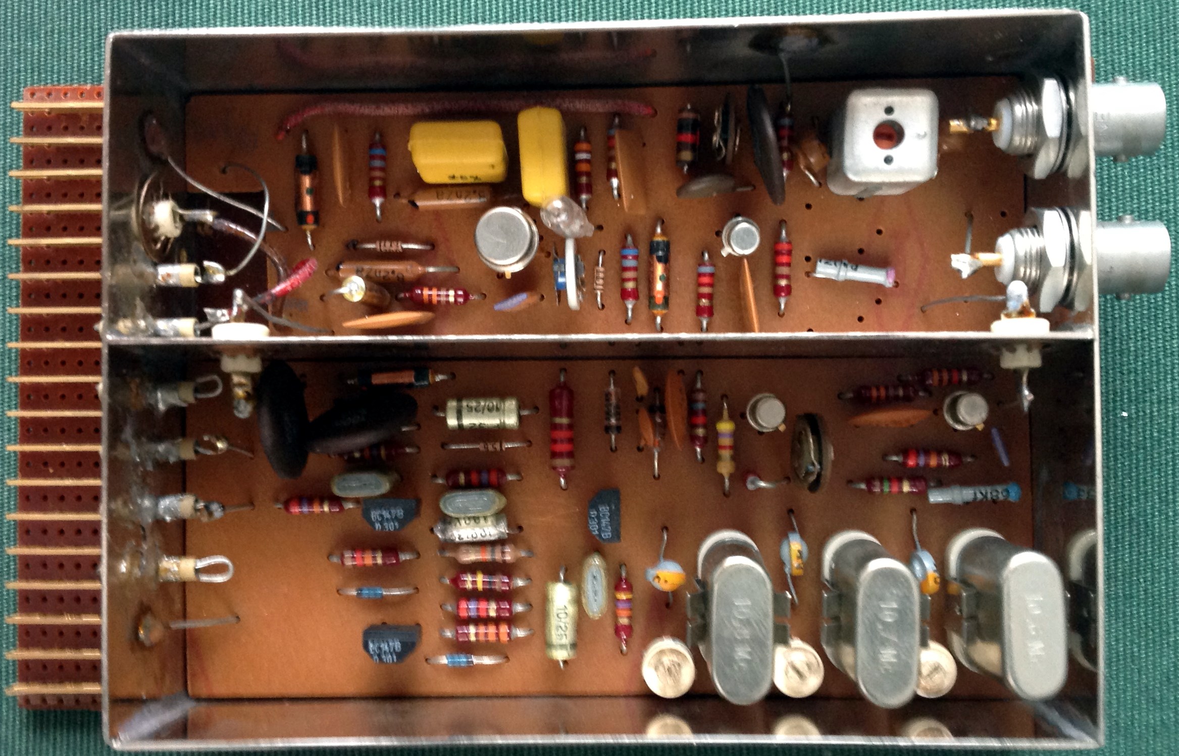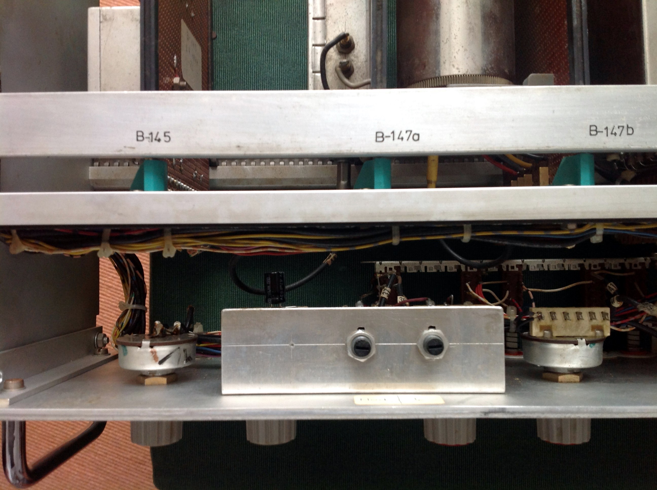Modul B-147a; HF-Oszillatorbaustein für B-146. Funktion scheint O.K. zu sein; der Pegel des HF-Signals, der als sauberer Sinus an seinem Ausgang anliegt und in das offenbar defekte Modul B-146 eingespeist wird, ist mit Sicherheit in Ordnung.