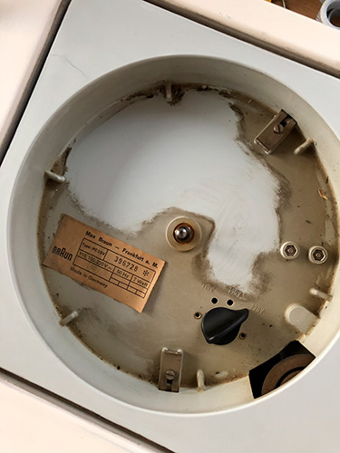 Ich habe mich heute wieder an die weitere Reinigung gemacht. Auch das Innenleben habe ich mir genauer angesehen. Ein paar Fotos hänge ich wieder an. Das Kabel vom Netzstecker ist innen einfach per Lüsterklemme an den Stecker verbunden und mit Isolierband umwickelt. Das werde ich definitiv noch ändern. Ansonsten läuft alles inkl. des Plattenspielers – hier nochmal danke an tomjorg für seinen Tipp. Der AUS/EIN Schalter auf der Rückseite hat es gebracht... :)