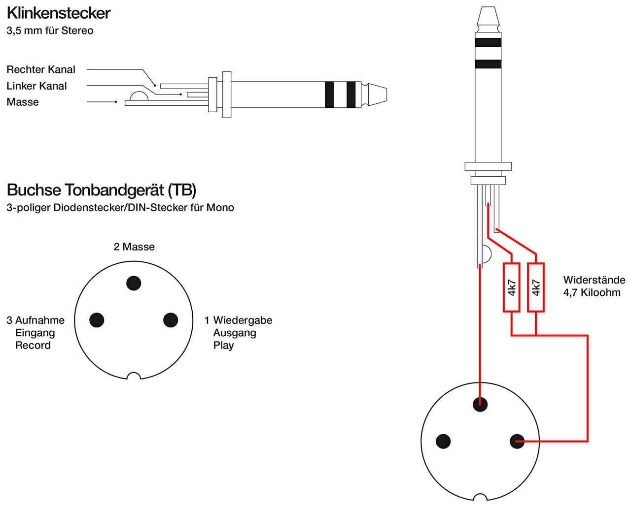 das Handbuch habe ich leider nicht, aber die TB-Buchse ist eine dreipolige DIN-Buchse. Die DIN-Stecker-Belegungen findest Du z.B. bei Wikipedia gut erklärt.