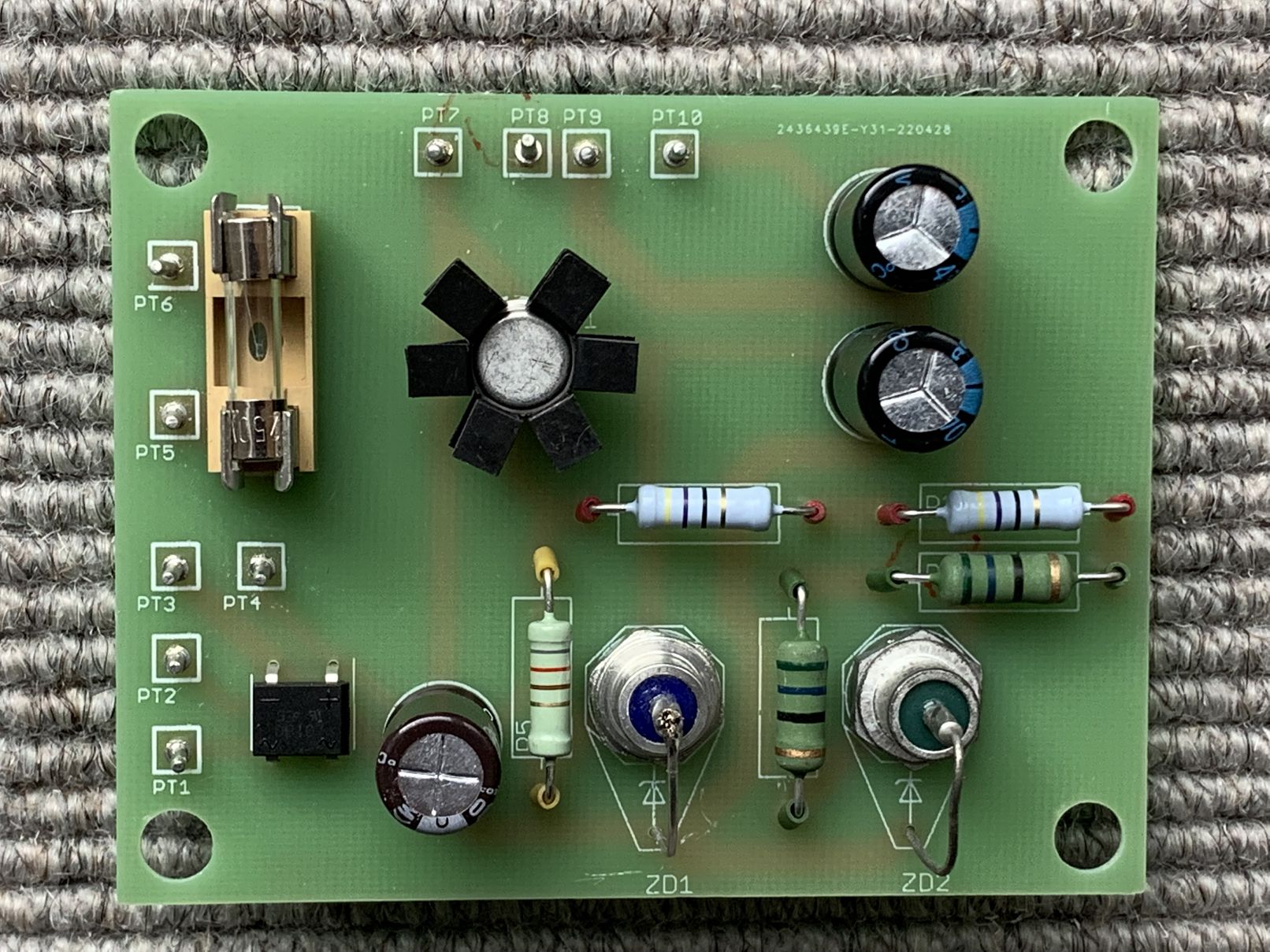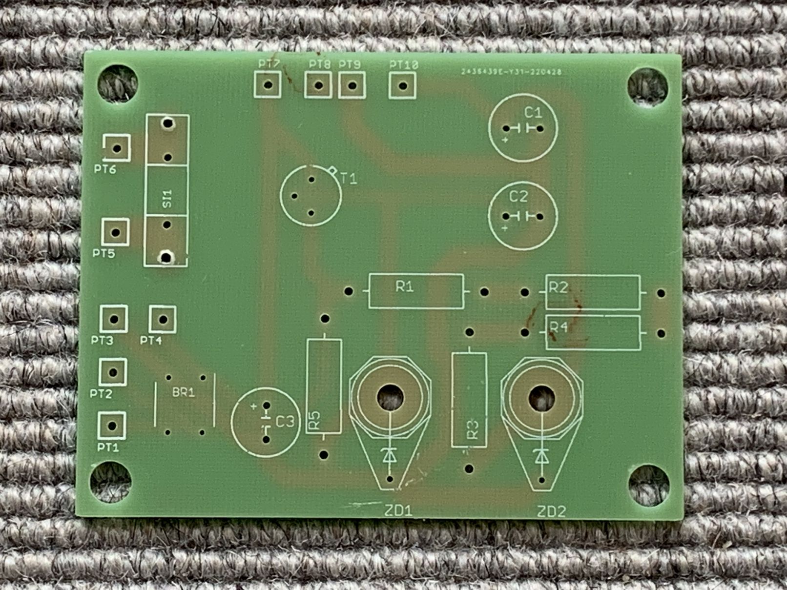 Danach kam die Netzteilplatine an die Reihe. Hier ein Foto vor der Bestückung, und eines nach der Bestückung: