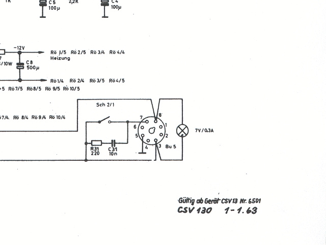 bisher ist mir noch kein CSV130 begegnet. Im HiFi-Museum gibt es eine Ansammlung von Titelseiten der verschiedenen Braun Servicemanuals. Dort gibt es eine Titelseite mit CSV130, Fertigungsjahr 1962/1966. Ich habe das Museum einmal angeschrieben und um eine komplette Kopie gebeten. Mal sehen ob ich eine Antwort erhalte. Wahrscheinlich ist Deine Annahme bezueglich einer werksinternen Bezeichnung zutreffend. Der von Dir gezeigte Schaltplanausschnitt war mir bisher unbekannt. Vielleicht weiss Rainer mehr darueber.