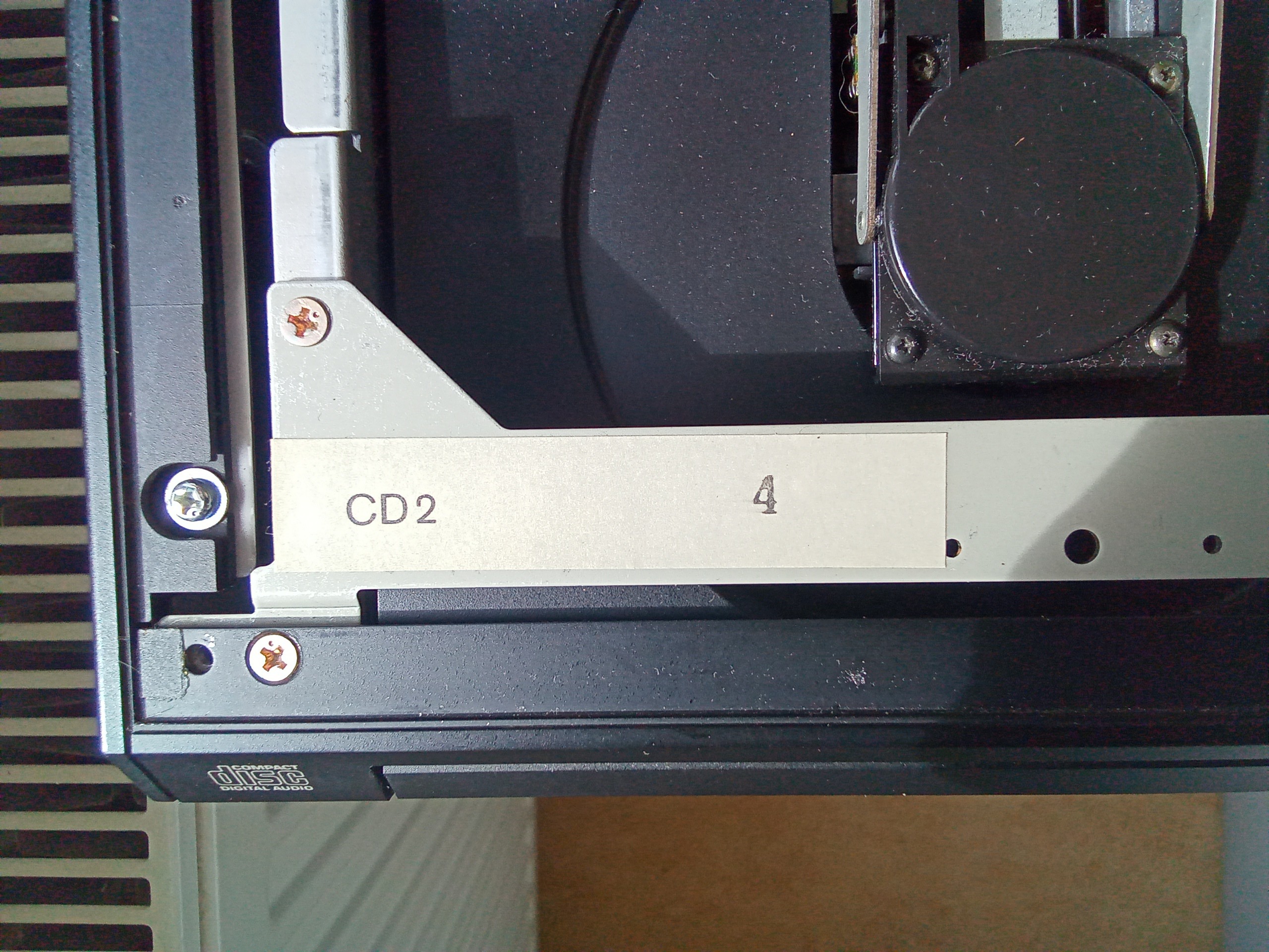 Der Braun CD Player hat ebenfalls innen einen Pappierstreifen, wo die Nummer 4 mit Schreibmaschiene geschrieben wurde!