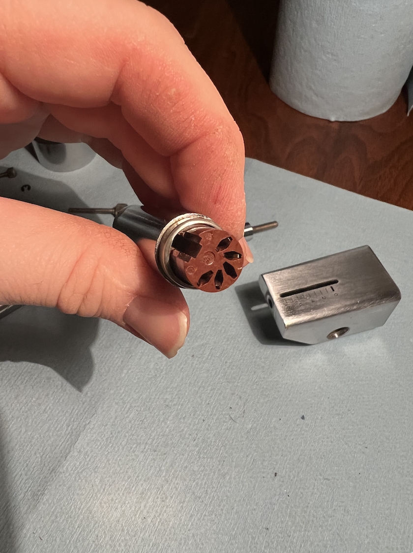 Ich versuche herauszufinden, wie ich einen PCS 5 reparieren kann, der beim Transport beschädigt wurde (der Tonarm wurde aus der Fassung gezogen), und jetzt versuche ich herauszufinden, wie ich dieses Teil zerlegen kann. Wie zerfällt die Baugruppe? Ich habe vor, den Tonarm neu zu verkabeln, bin hier aber auf eine Hürde gestoßen, da ich dieses Teil nicht auseinandernehmen konnte -