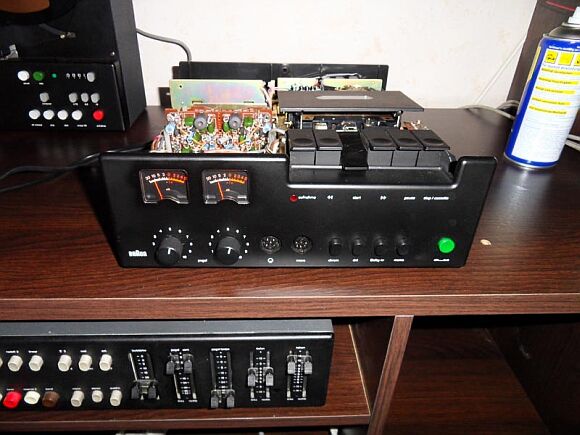 Das Gerät hat wie eigentlich alle geleiert, sich abgeschaltet und weder vor noch zurück gespult. Es wird meistens empfohlen die Riemen zu tauschen, was zwar sinnvoll ist aber immer nur die halbe Miete. Ein weitaus größeres Problem bei dem Gerät sind verharzte Öle und verklebte Reibräder.