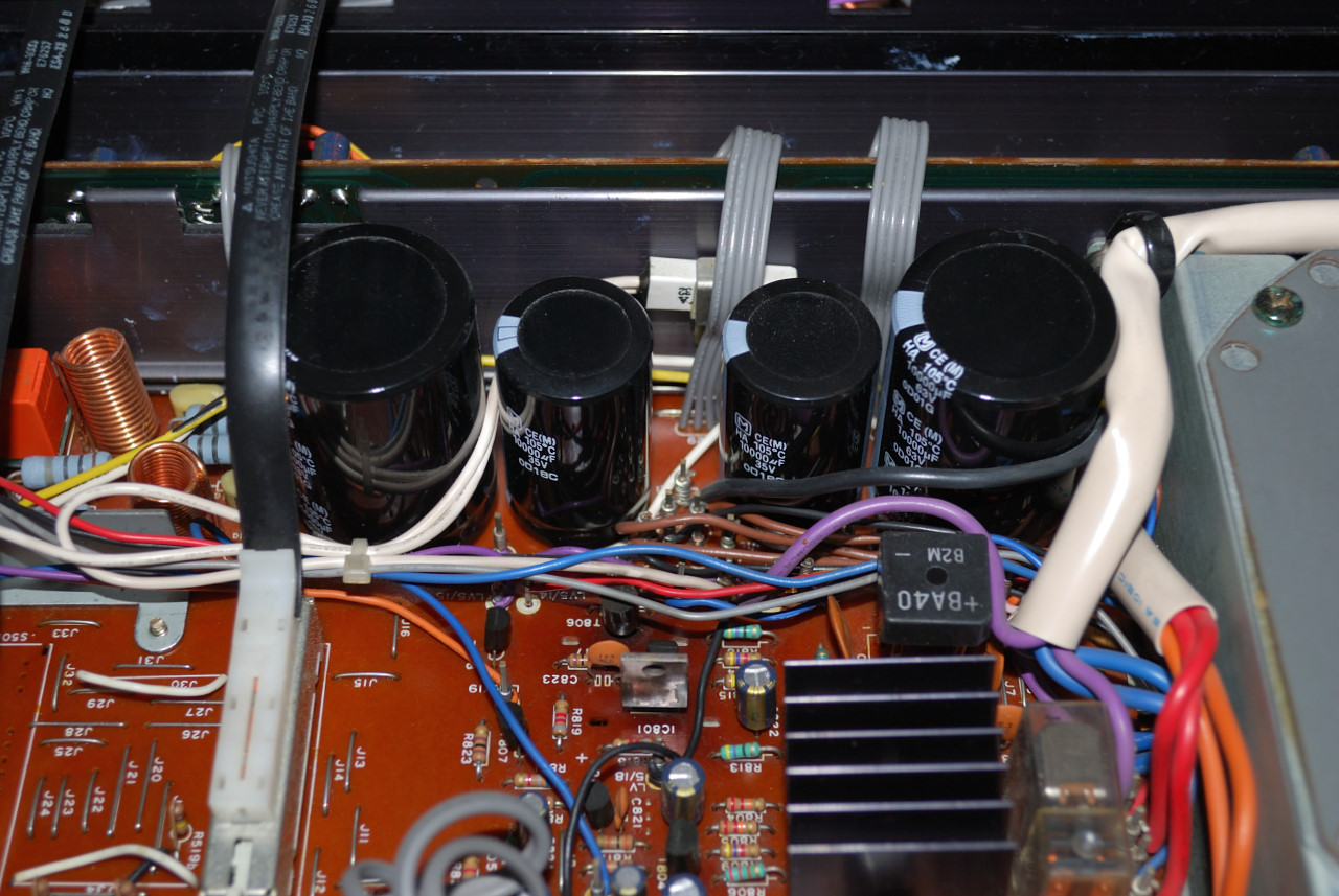 Bitte siehe mal auf angehängtes Foto: Dort habe ich Panaconic TS-HA 10.000µF/63V verbaut. Die haben aber 35 mm Außendurchmesser und 50 mm Bauhöhe. Die 50 mm Bauhöhe sind kein Problem, auch die 35 mm Durchmesser gehen zur Not. Aber dann gibt es etwas Probleme mit dem record-Wahlschalter-Zug, wie Du sehen kannst. (Der klemmt dann unmittelbar ein zwischen Elko und Deckel.) Nun ist letzterer nicht sehr wichtig mehr, aber eben ganz fein ist es auch nicht. Ein weiteres Mal habe ich die Mundorf/Mlytic verbaut, die haben nur 30 mm Durchmesser, kosten aber auch erheblich mehr. Freilich gibt es die TS-HA regulär nicht mehr, aber das hast Du ja bereits festgestellt.