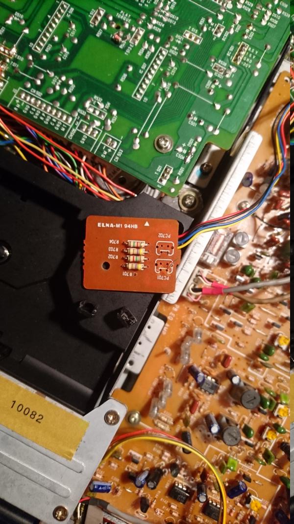 Leider bin ich aus Unachtsamkeit beim Einbau an der Platine hinter der Auszugssperre hängengeblieben und habe die Teile PC 701 und PC 702 von der kleinen Platine ELNA M194HB gerissen.