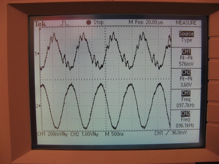 Da liegen - ohne NF-Signal - ca. 600 mV P-P (LV6/38) und ca. 800 mV P-P (LV6/37) mit einer Frequenz von ca. 930 kHz an... (s. Bild).