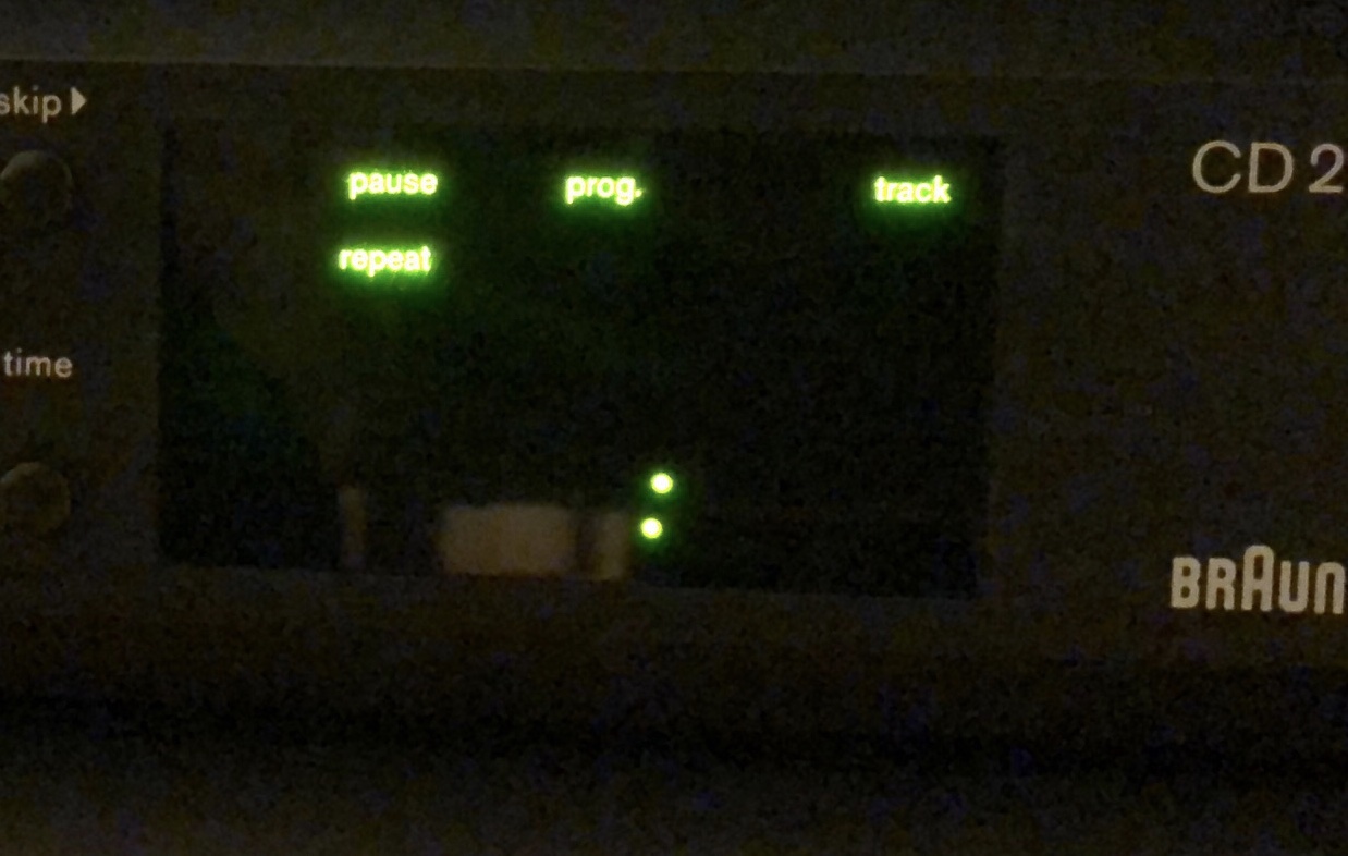 Mitten in der Advents-CD erstirbt der Klang, das Display blinkt (siehe Foto), leicht schnarrende Geräusche sind zu hören, der Slider funktioniert, eine eingelegte CD wird auch gedreht, aber der Fehler bleibt. Irgendwelche Ideen? (Bin kein Schrauber, würde mich aber bei Aussicht auf Erfolg auf die Suche nach Hilfe in Hamburg machen).