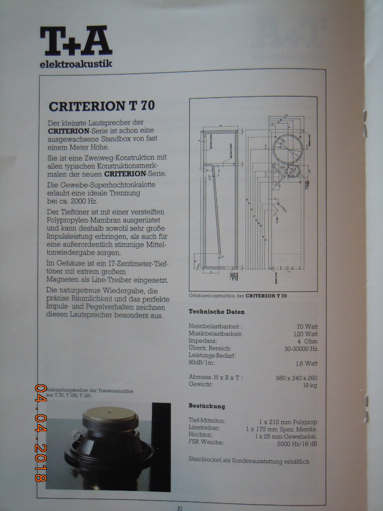 In der HIFI Presse sind seinerzeit die T 70 in die Spitzenklasse IV, Klang: sehr gut, Fertigungsqualität: Sehr gut … bewertet worden … andere HiFi Magazine haben die T 70 als Testsieger bewertet.