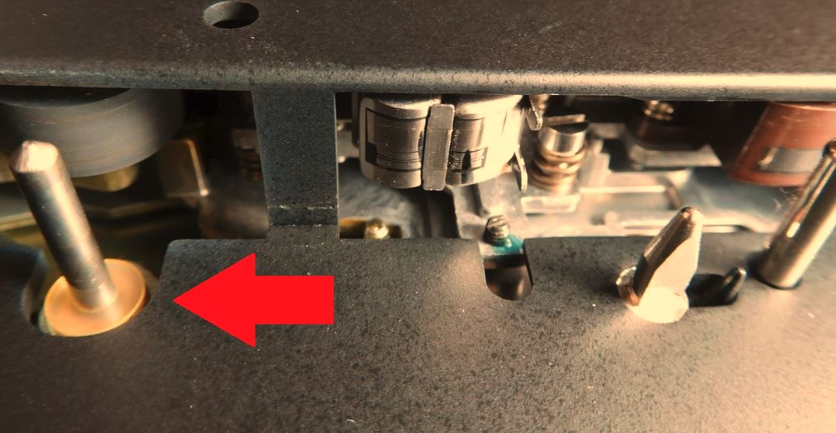 vielen Dank für Deine Antwort. Ja, die Kunststoffplatte um den Capstan ist tatsächlich ähnlich gelblich verfärbt, wie auf Deinem Foto zu sehen.