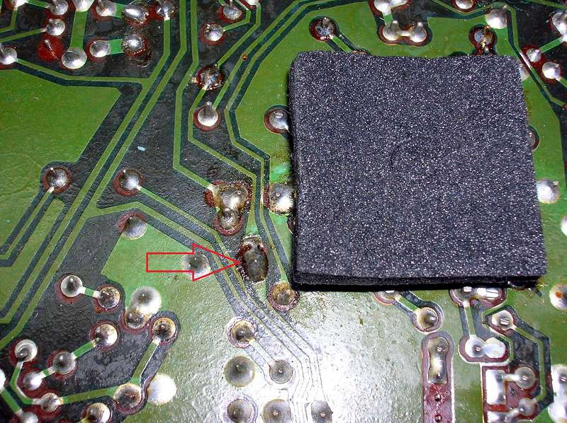 Dabei habe ich auch den dicken Lötklecks am MP6 entfernt und nicht gesehen, dass exakt an dieser Stelle die Leiterbahn unterbrochen ist und nur durch den Lötklecks gebrückt wird.