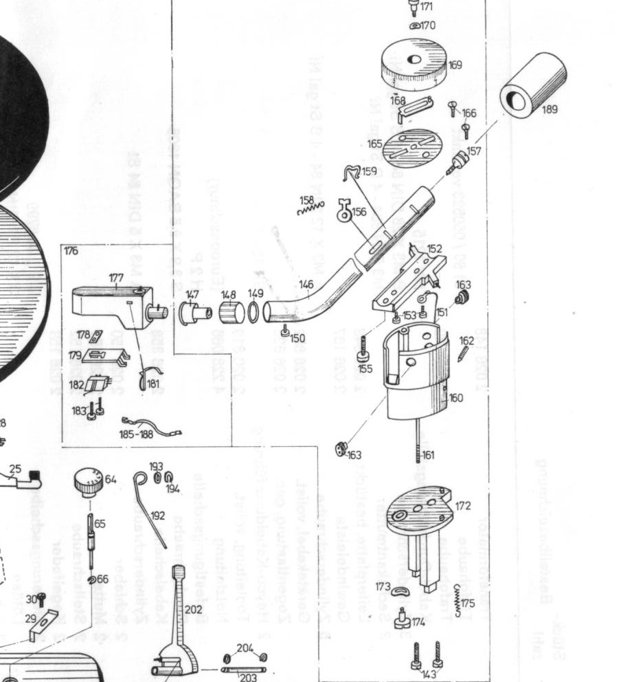 Den Heber nachzubauen und zu drucken ist kein Hexenwerk, allerdings erschließt sich mir nicht wie die Hebelstange dort eingehangen wird. Die Braun Expolosionszeichnung verschweigt diesen Heber am Ende der Hebelstange 161. Hat evtl. jemand ein Foto oder gibt es eine bessere Zeichung?