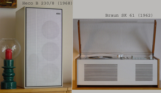 ich betreibe seit Kurzem die Braun Radio-Phono-Kombiation SK 61 zusammen mit der Heco Hifi-Lautsprecherbox B 230/8 und möchte Euch hier mal davon berichten. Beide Geräte besitze ich seit etwa einem halben Jahrhundert, habe die Geräte aber noch nie zusammengeschaltet. Die Geräte haben beide ein für Ihre Zeit modernes Design. Die Heco-Box könnte von der Optik her auch von Braun stammen.