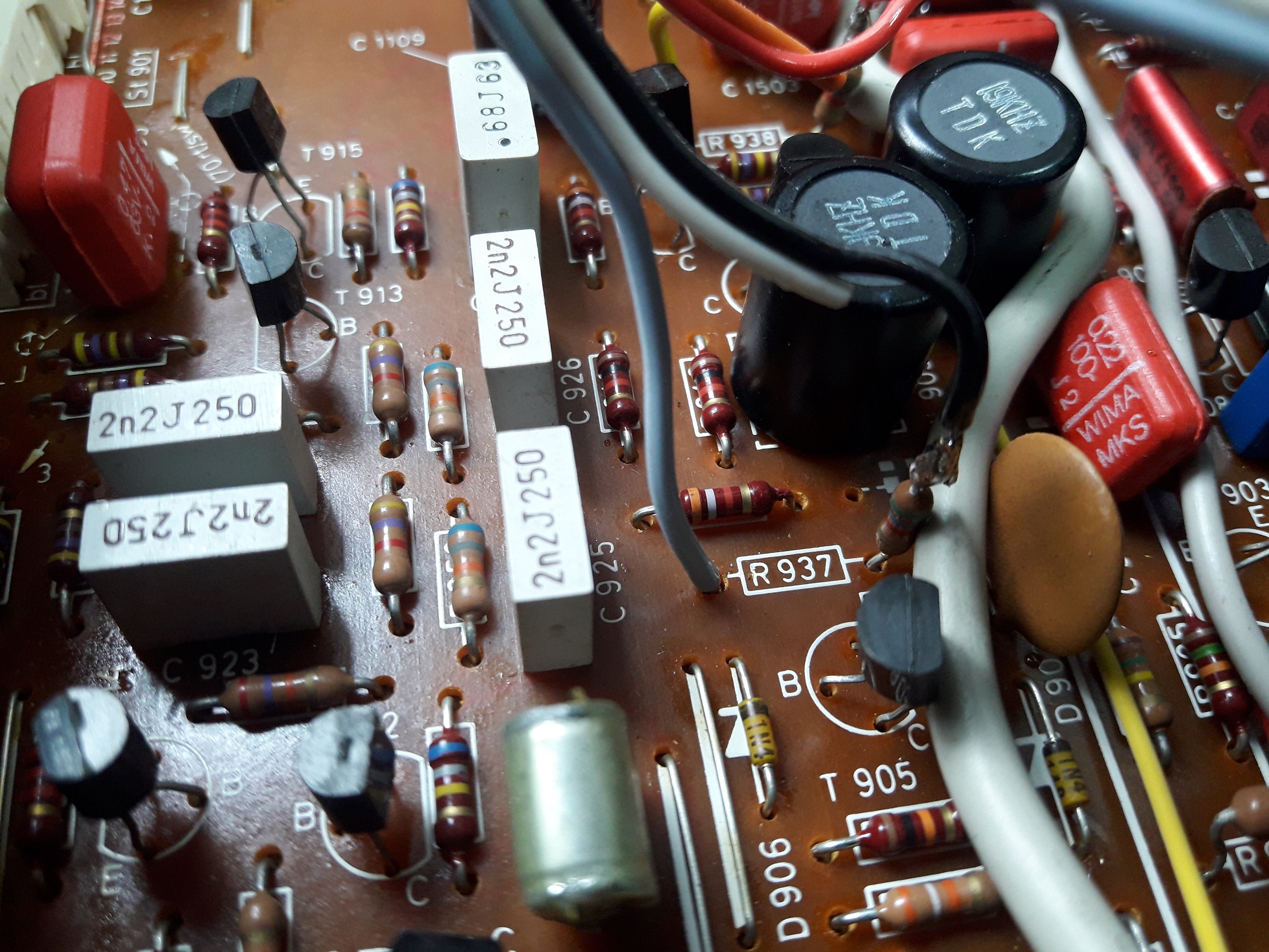 Für die Anbindung vom Stereodecoder werden zwei Widerstände R937 und R938 einseitig ausgelötet und mit den Eingangs und Ausgangs-Anschlüssen des Moduls verbunden.