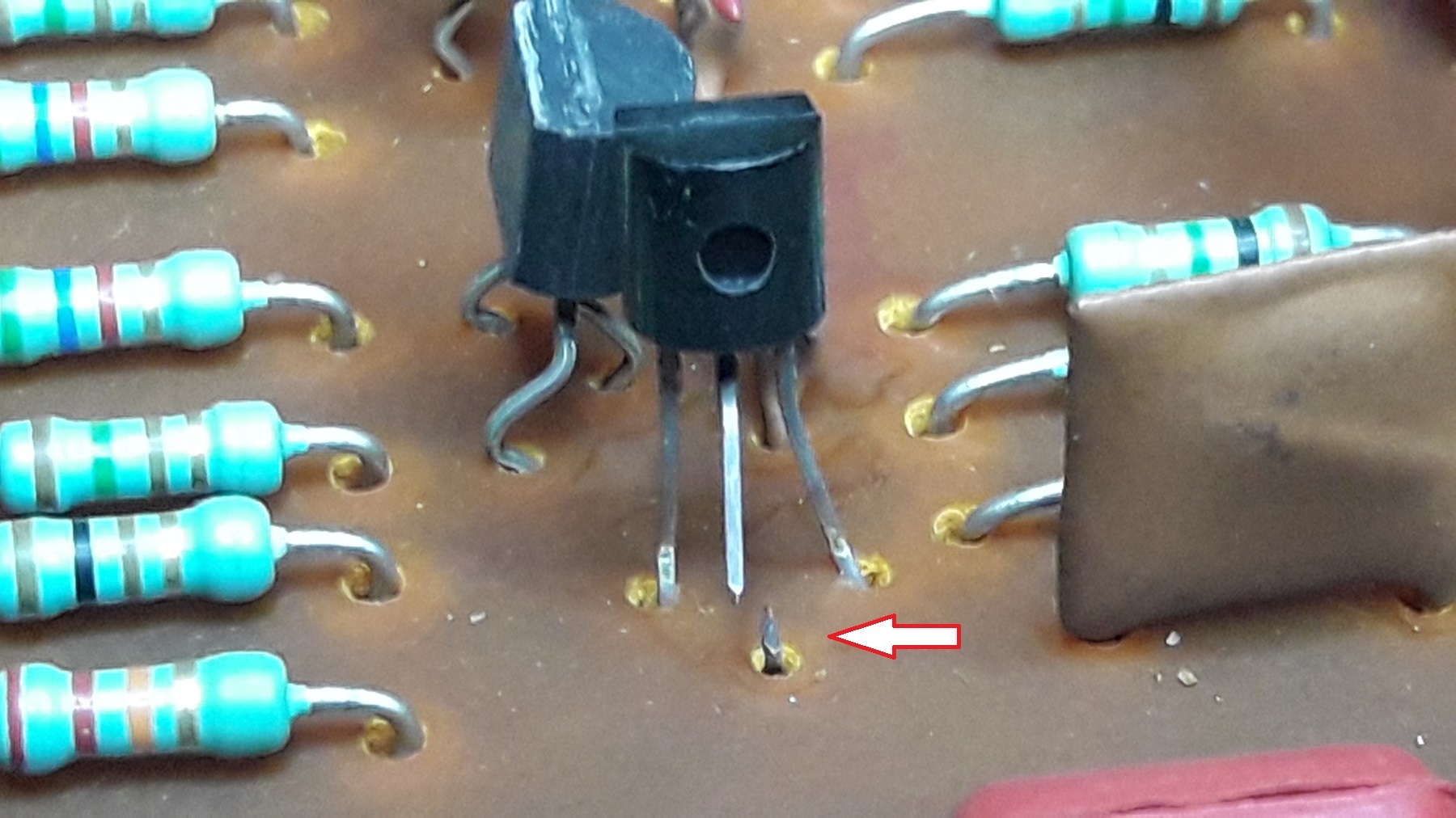 Viertens muss wohl ein "guter" Fachmann beim Gerät am Werk gewesen sein. Jedenfalls wurden die Transistoren T 801 + T 805 sehr brutal ausgelötet