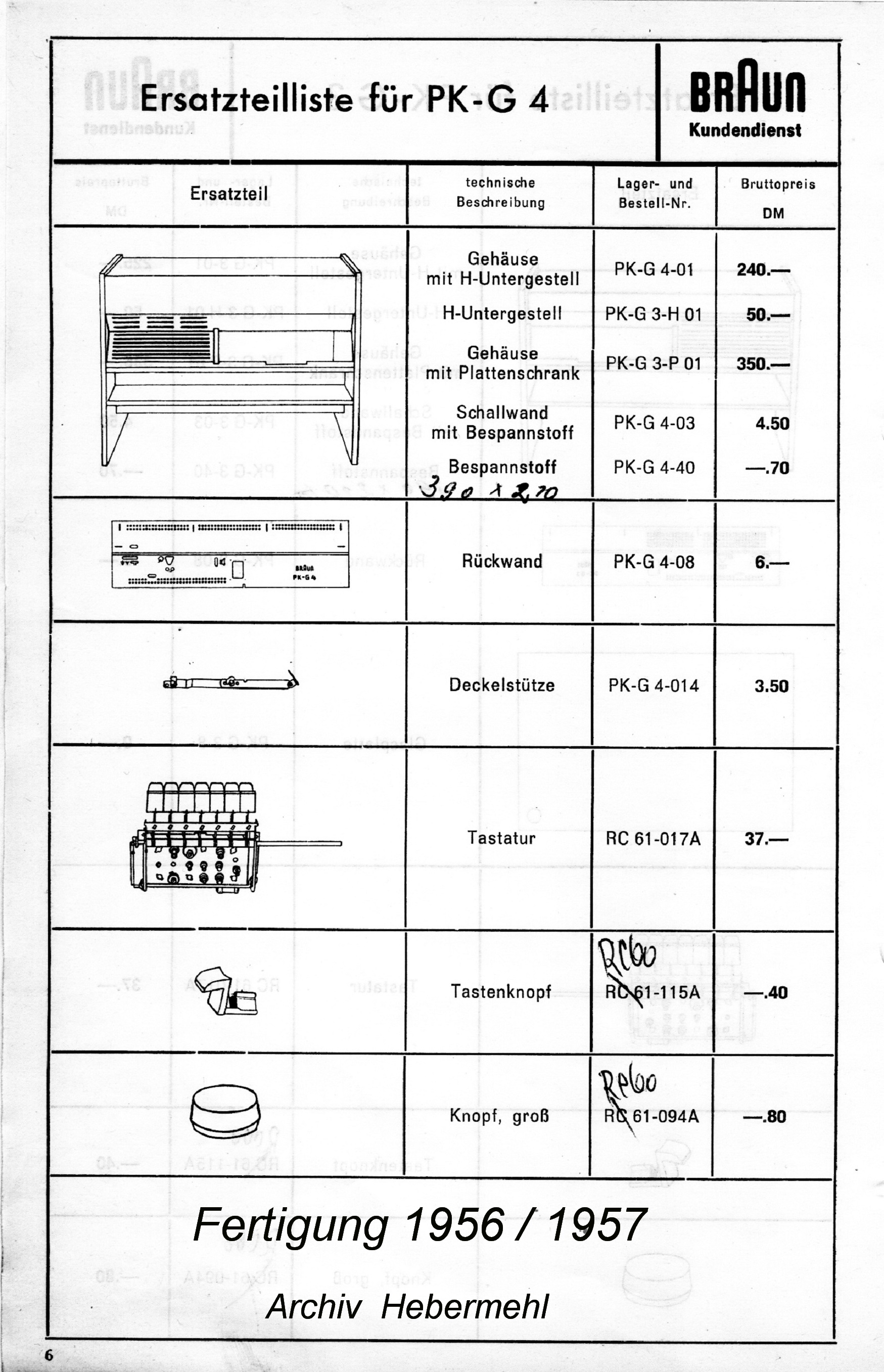 Hier die Ersatzteilliste mit Preisen
