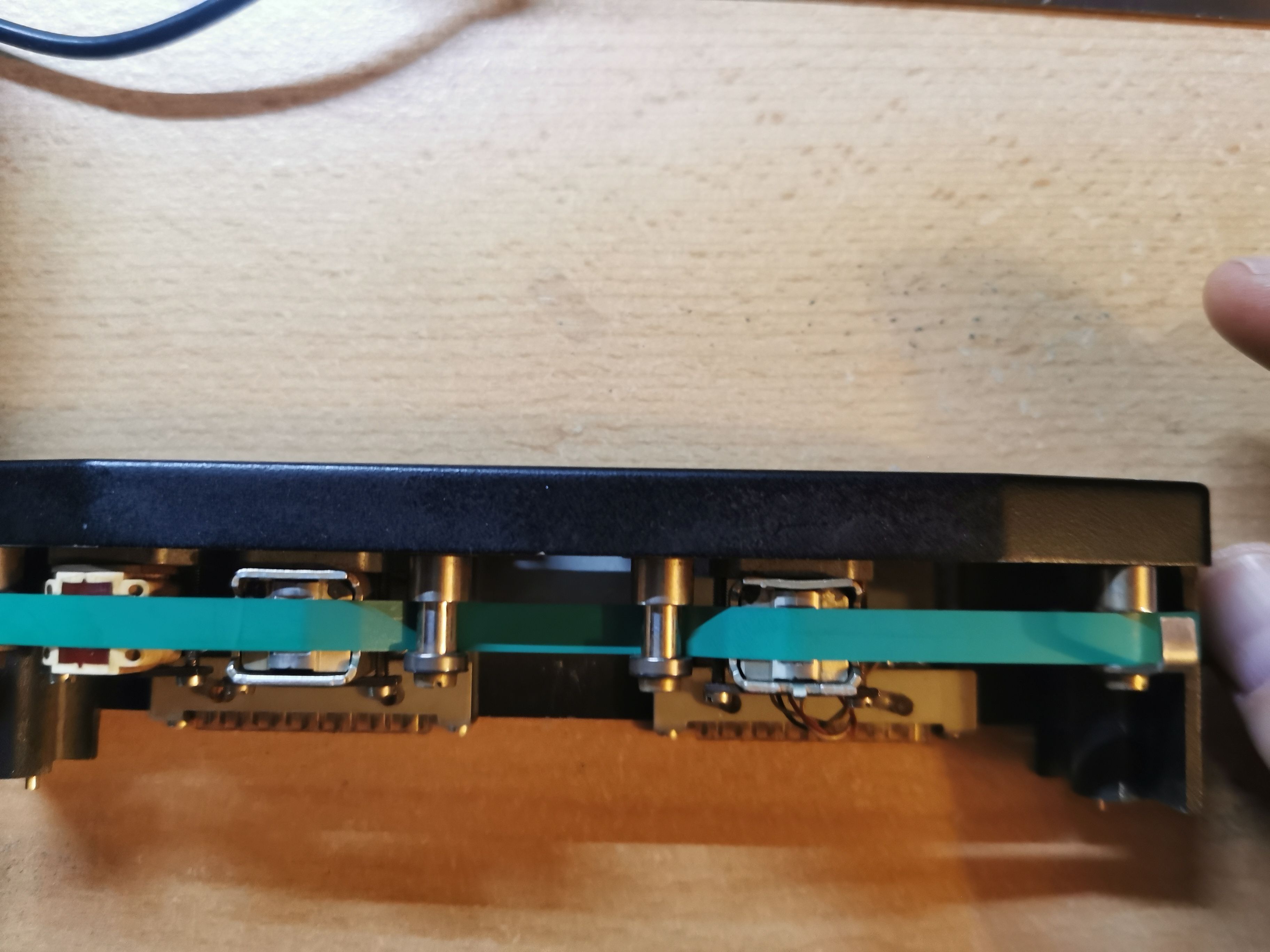 Nach Montage der Kopfbrücke war der Ton schon besser. Nach einem Blick ins Service-Manual habe ich dann mal den entsprechenden Trimmkondensator (L) und - Trimmpotentiometer (R) für die linke Spur bewegt. Seither ist die Verzerrung auf dem linken Kanal weg. Was weiterhin etwas fehlt, sind die Höhen beim linken Kanal.