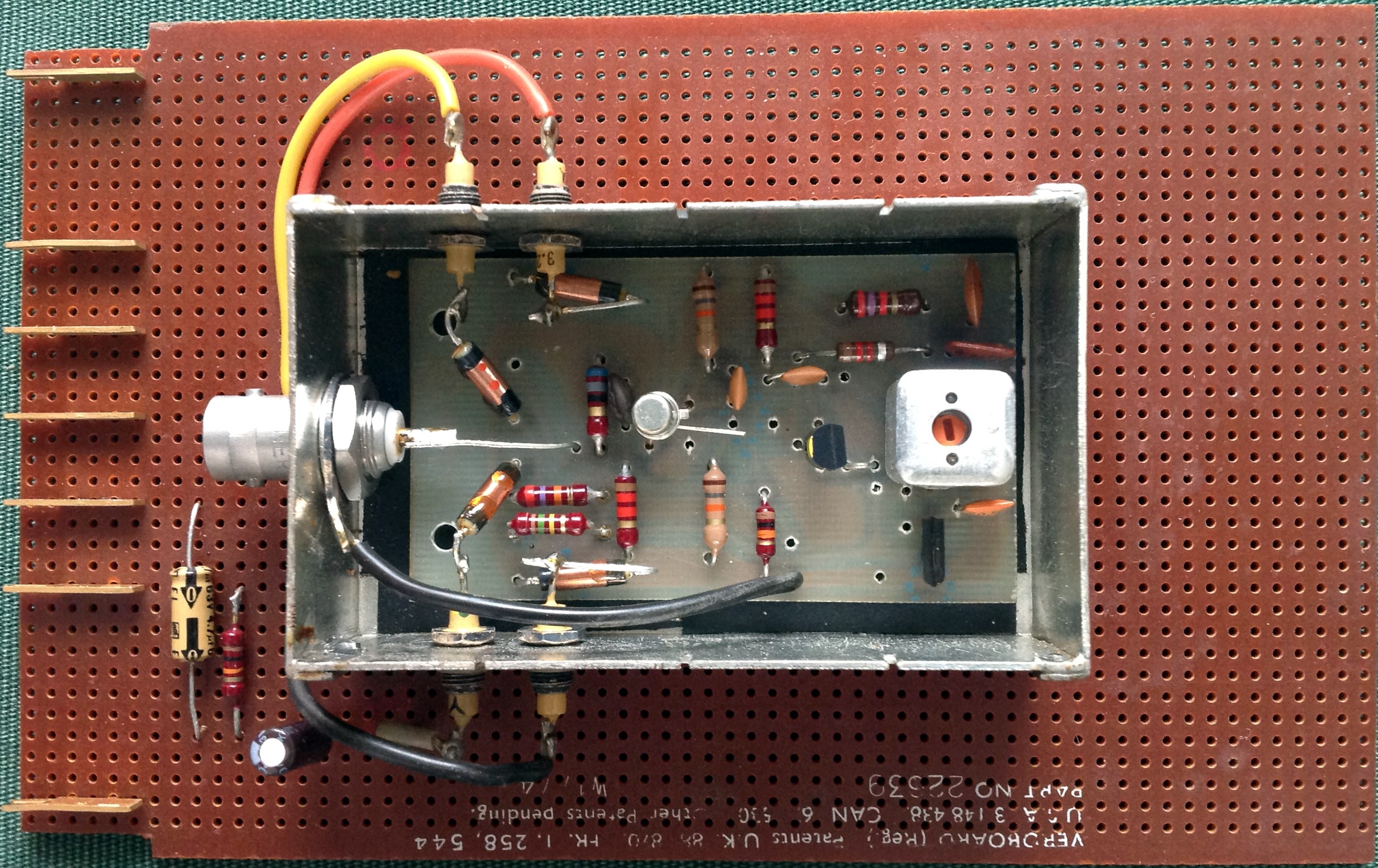 Modul B-147b; Sender 10,7 MHz mit Feineinstellung der Oszillatorfrequenz. Hermetisch geschlossenes, aufschraubbares Zylindergehäuse; nach Aufschrauben des Gehäuses war alles gut zugänglich. Habe beide HF-Transistoren (Oszillator und Verstärker) auf Verdacht hin ausgelötet und durchgemessen. Der BF241 (Osz.) zeigte im Vergleich mit einem neuen Exemplar atypische Werte am Ohmmeter. Nach dessen Austausch: Funktion nun O.K.