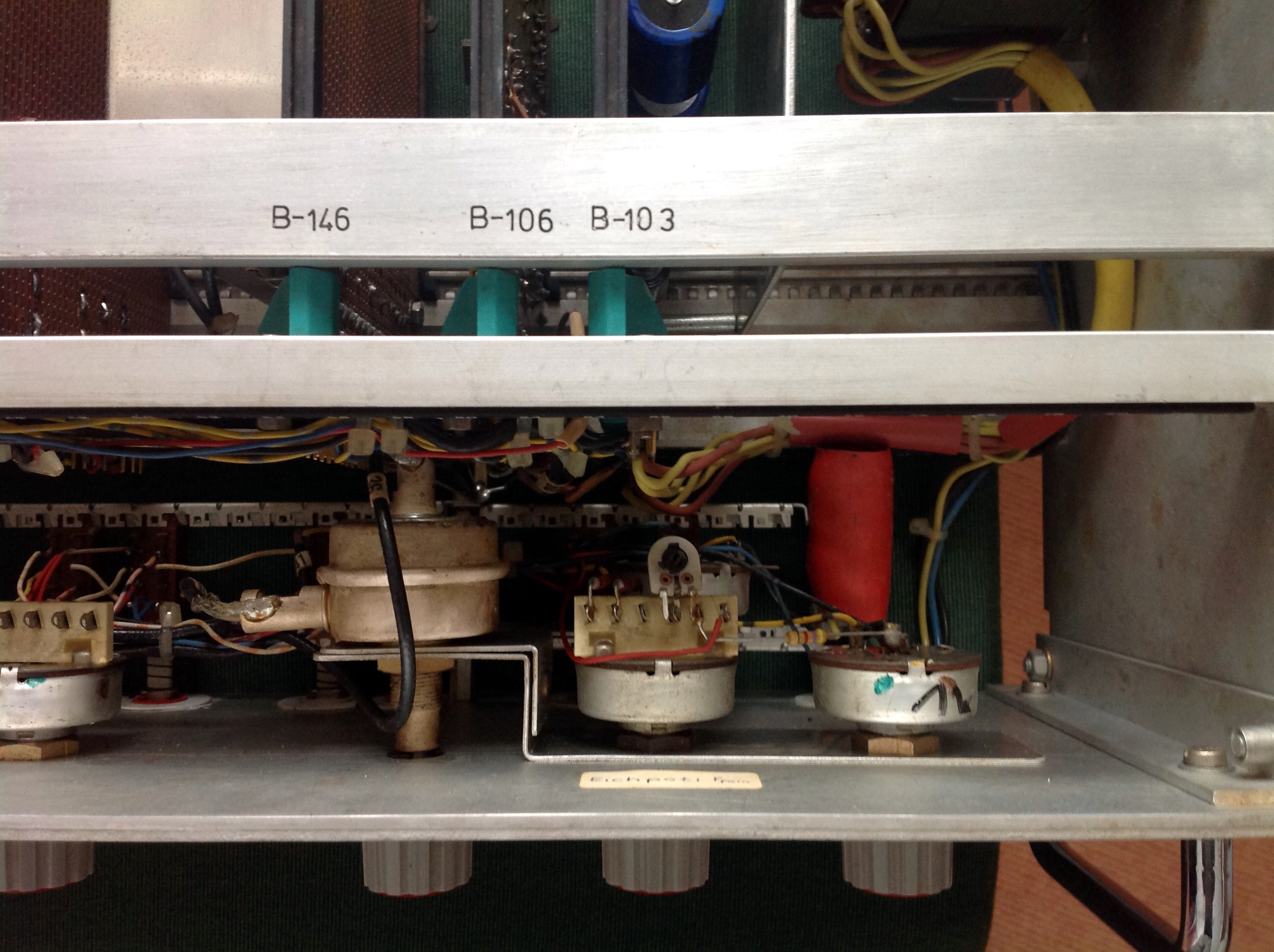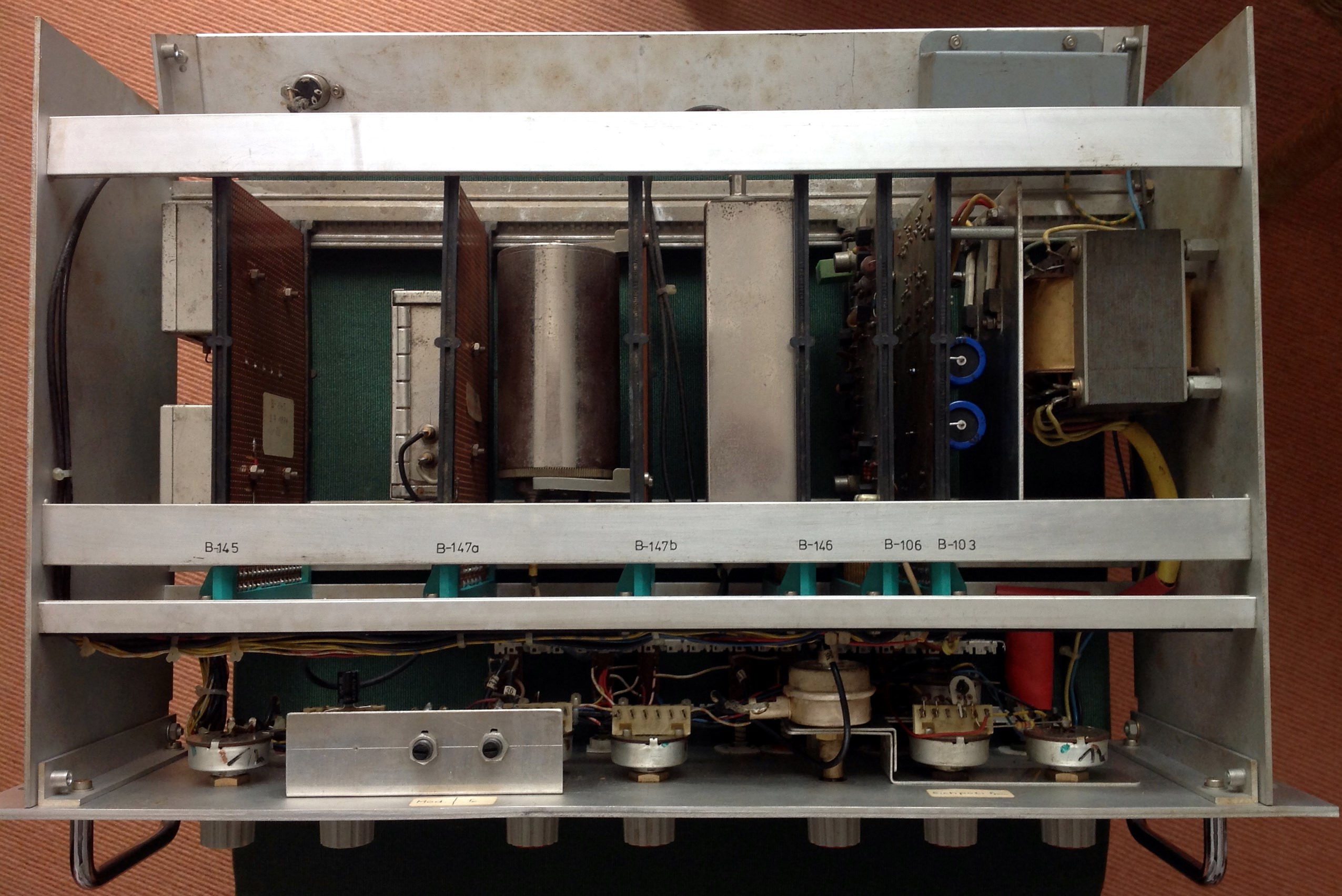 Modul B-147a; HF-Oszillatorbaustein für B-146. Funktion scheint O.K. zu sein; der Pegel des HF-Signals, der als sauberer Sinus an seinem Ausgang anliegt und in das offenbar defekte Modul B-146 eingespeist wird, ist mit Sicherheit in Ordnung.